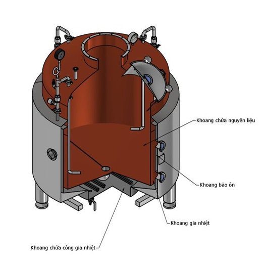 Chức năng & cấu tạo: Là nơi chứa dịch lên men, gia nhiệt để bay hơi các chất.